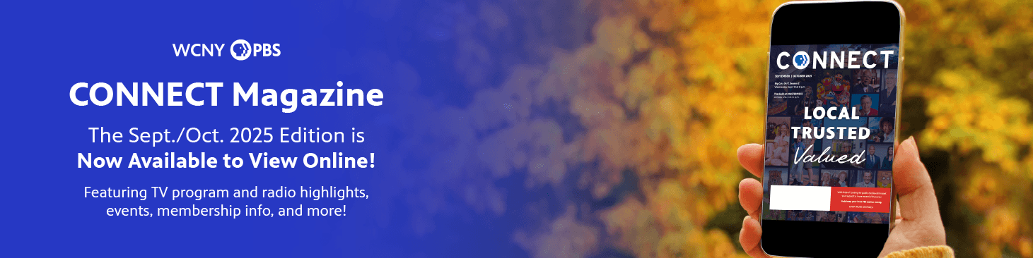 WCNY’s “CONNECT” magazine is a bi-monthly subscriber only publication reaching over 16,000 households with each edition across Central New York. This high-end glossy 32-page magazine is a staple on members’ coffee tables for two months, providing TV and radio programming information, seasonal content, and more!