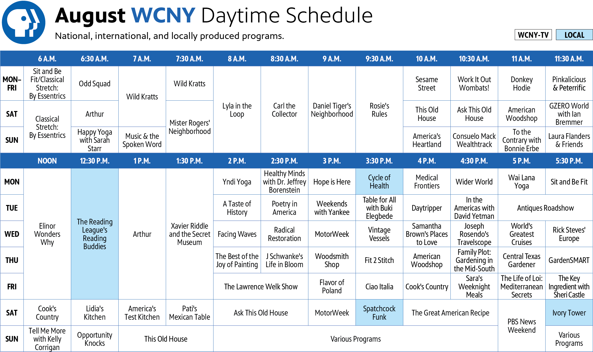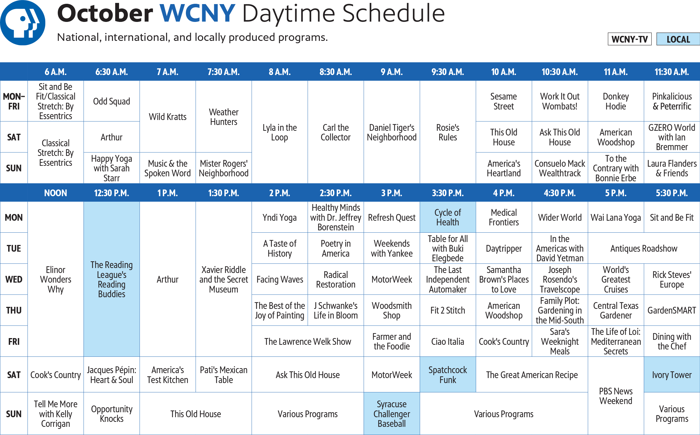 WCNY offers award-winning, high-quality PBS KIDS programming on two of its television channels—PBS KIDS 24/7 channel and WCNY-TV. PBS KIDS believes the world is full of possibilities, and so is every child. As the number one educational media brand for kids, PBS KIDS helps children ages 2-8 learn lessons that last a lifetime. Through television, digital media, and community-based programs, PBS KIDS wants children to see themselves uniquely reflected and celebrated in lovable, diverse characters who serve as positive role models, and to explore their feelings and discover new adventures along the way.
