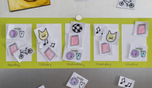 Show your child how to make a calendar! Making a calendar is a process that can help children with setting goals and completing tasks, such as finishing homework or a chore. Taking the time to sit with your child and create a calendar like this one allows children to start building independence, look ahead, and develop a sense of responsibility for the future.